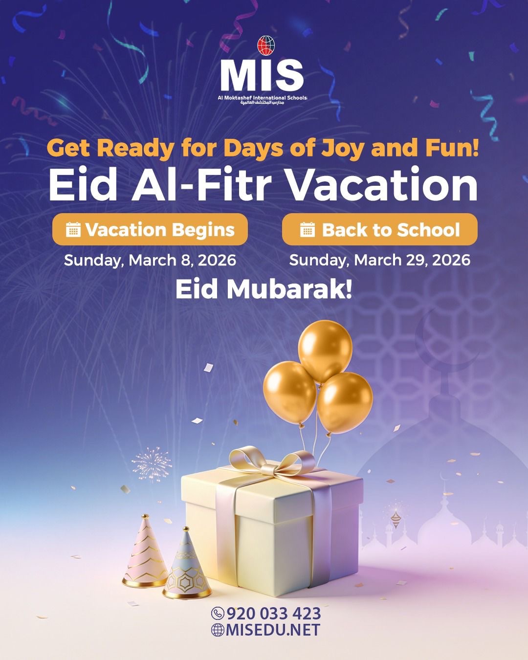 "Ready for tomorrow." At Al Moktashef International School, we place our students at the top of our priority list. Every lesson plan, school activity, and administrative decision made in our school tackles the essential question: "How do we ensure the well-being of our students?"